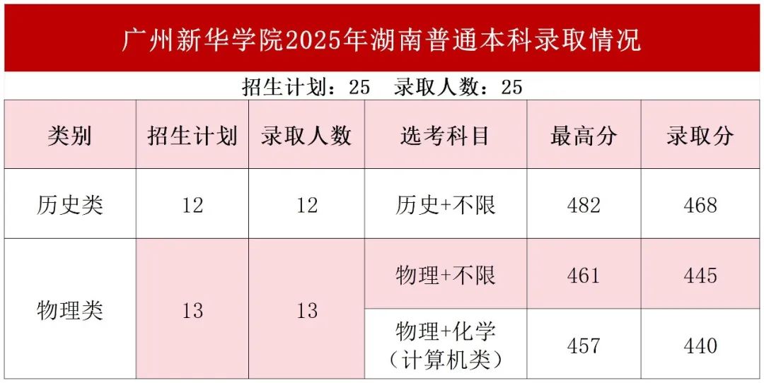 广州新华学院2025江苏、湖南普通本科录取情况公布!