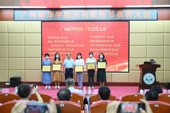 9月10日,广州新华学院(以下简称“我校”)2021年教师节表彰大会在广州校区举行。学校领导,发展专家顾问委员会、教学指导委员会成员,教学督导代表,受表彰的教师和教育工作者代表,各院(系)党政负责人、首席教授、学科带头人,各职能部门负责人,入选“双百计划”教师代表及中青年骨干教师代表、新入职教师代表等百余人参会。大会由肖化副校长主持。