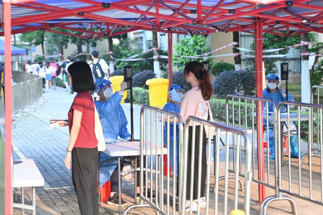 在考生入校考试的外围、进校通道、考场的布置上,我校在属地疾控部门的指导下,既考虑属地防疫要求,又结合学校的考点实际和考生的应考实际需求,持续优化设置,确保考生安全有序顺畅快速地完成各查验环节,抵达考场安心应考。同时,我校还为临近迟到的考生开通绿色通道确保顺利抵达考场,为异常情况的考生设立专用通道,由专人专车分类送至备用、隔离考场。